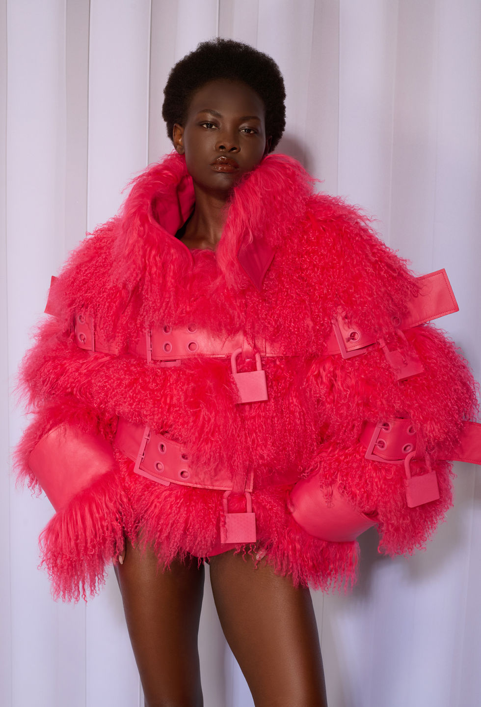 My project explores the Economy of Love, or how love has become an economic product. Today, nearly every aspect of love can be marketed and commercialized. I examined two cultural phenomena that reflect this: the first is the “love locks” tradition on the Pont des Arts in Paris, where couples lock a padlock and throw away the key, a romantic gesture with commercial roots. The second is Japan’s Love Hotels, where couples rent rooms by the hour, a highly profitable industry. My collection reflects this idea through imagery from the world of economics — such as money, receipts, and banknotes, combined with symbols from these traditions, including padlocks, quilted fabrics reminiscent of hotel bedding and pillows, the color pink, associated with romance, “luxurious” fur and heart-shaped silhouettes. The collection aimed at both women and men and combines street with high fashion.