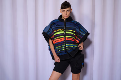 הפער הזה הפך לנקודת הפתיחה לקולקציה שלי שמבקשת לפרק ולהרכיב מחדש. אספתי חליפות גלישה משומשות או פגומות, ניתקתי אותן מהפונקציה המקורית שלהן, וגיליתי עולם עשיר של צבע, טקסטורה, וקווי חיתוך.